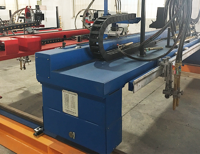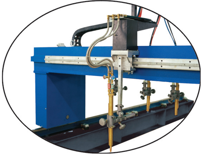 為滿足鋼結構、建筑業(yè)、鍋爐等行業(yè)批量加工條形板的需求,我公司專門為其開發(fā)的一種利用燃氣和氧氣作為切割氣體的高效專用設備(多頭直條切割機)。本機器具有結構緊湊、操作方便、使用安全、切割精度高、生產效率高、材料利用率高、等優(yōu)點。以及相對低的設備投資,正為越來越多的企業(yè)所重視,在生產中得到越來越廣泛的應用。該切割機的部件構成主要有:機架、縱、橫向驅動裝置和導軌、割炬組件、氣路系統(tǒng)、電氣系統(tǒng)以及軟管的縱、橫向拖曳裝置等。