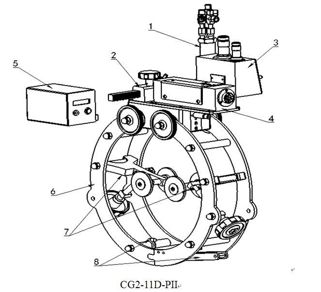 6.圓形導軌     7.夾緊裝置       8鎖緊裝置