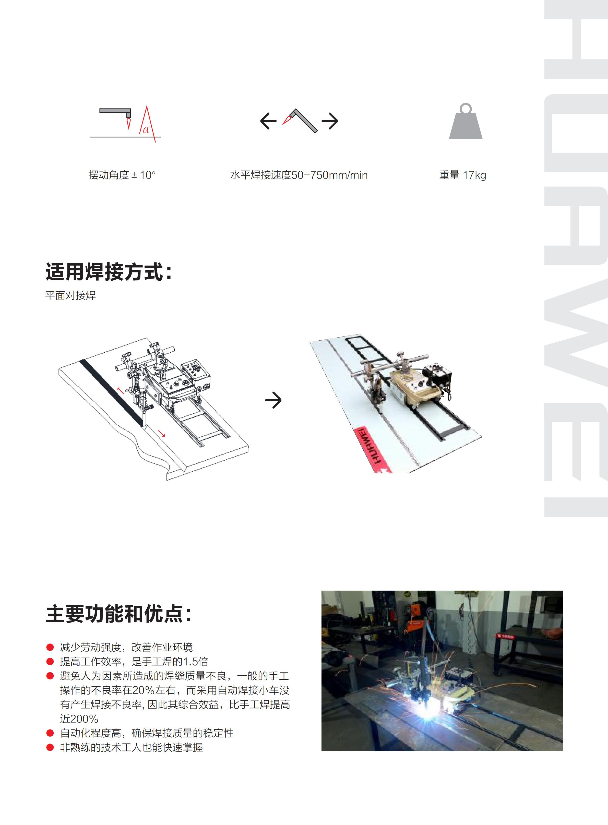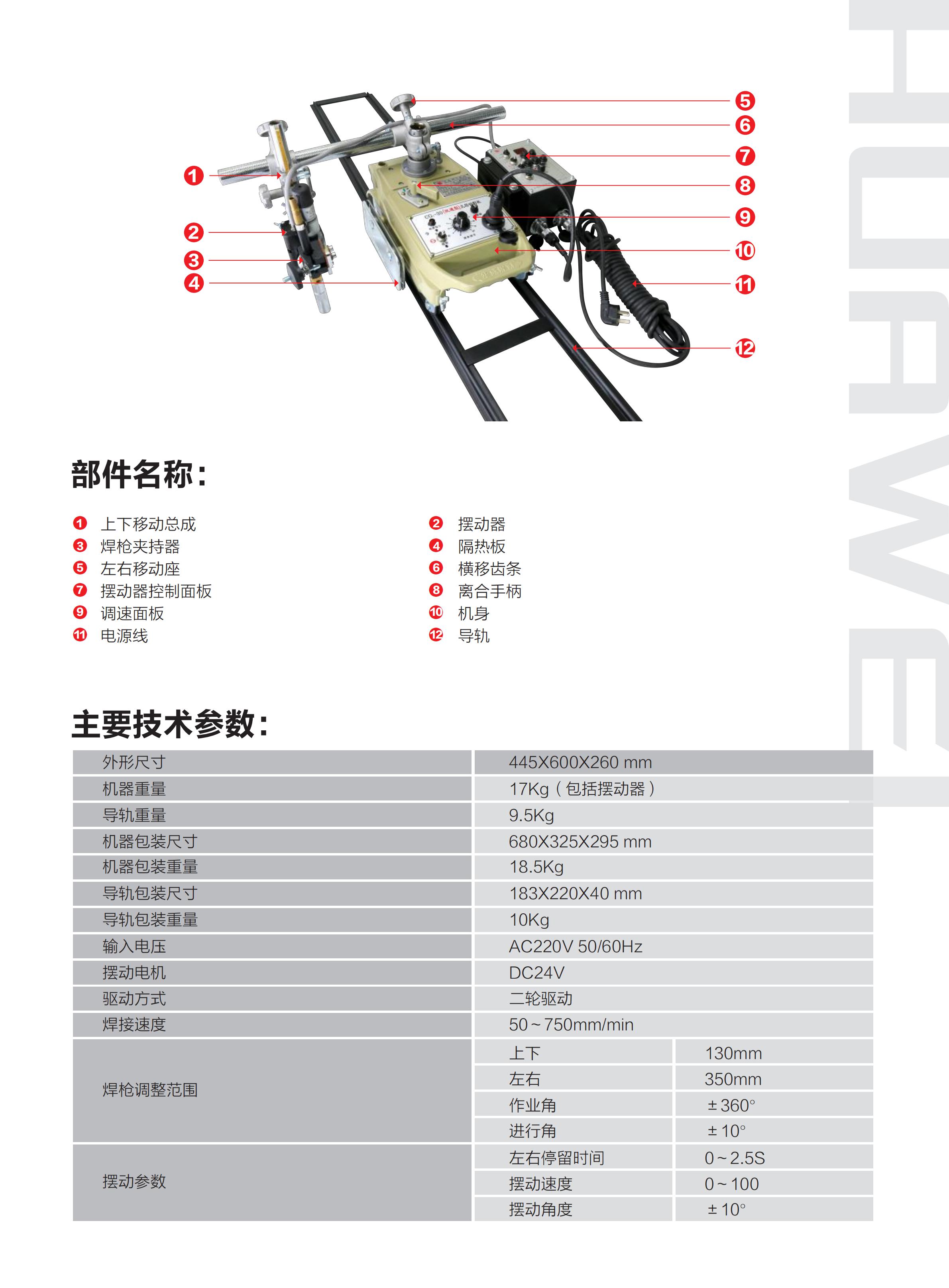 CG1-30-S擺動式自動焊接小車采用高強(qiáng)度鋁錠材料,精密壓鑄制作,結(jié)構(gòu)設(shè)計合理,行走穩(wěn)定性好。本小車在標(biāo)準(zhǔn)速度運行時,配合焊接控制盒和焊接擺動器可進(jìn)行自動擺動焊接工作;也可裝置火焰切割割炬進(jìn)行切割加工。