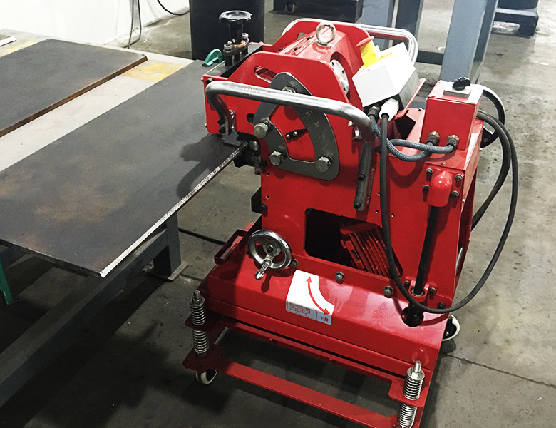 9)調節螺絲:根據坡口鋼板的厚度來定位滾輪高度。