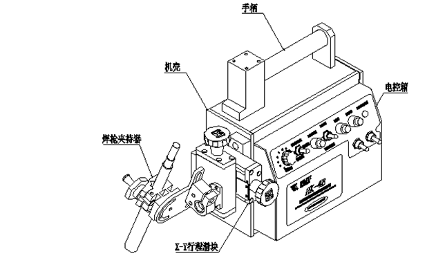 4) 焊槍夾持器:焊槍的夾持裝置,同時可以很方便地調節焊槍所需角度。